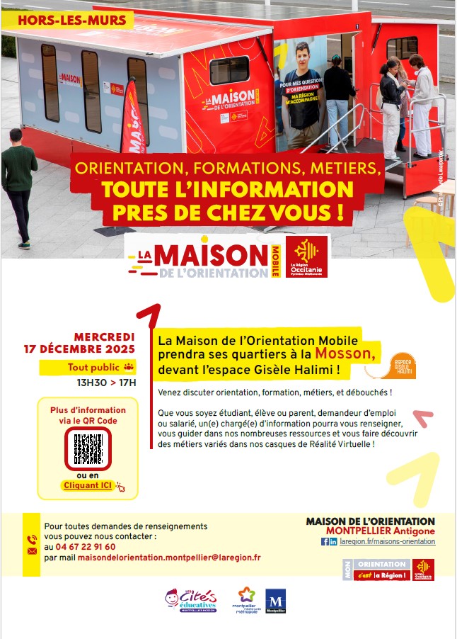 Toute l'information près de chez vous ! La Maison de l'Orientation Mobile à la Mosson Montpellier À venir